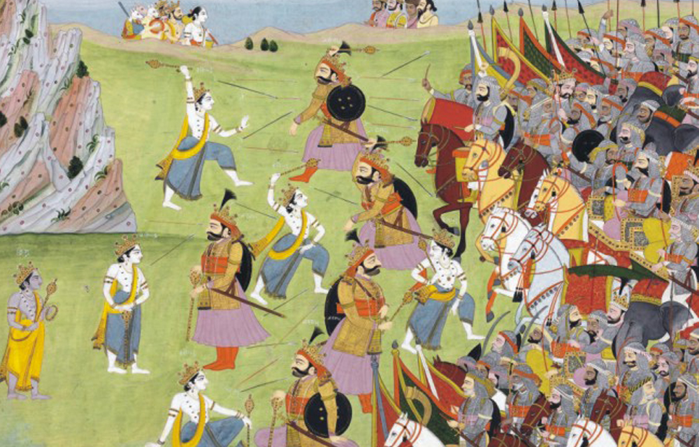 C. 1500 B.C. - The second great epic of the Hindus, the Mahabharat (The great war of India) mentions Rajanaka Susarma Chandra (234th Naresh of Trigarth in lineal descent from the founder Rajanaka Bhumi Chandra) who fought on the side of Kaurvas, as Duryodhan was his son-in-law. Raja Susarma Chandra was given the task of battling the Raja of Matsya and was also involved in the plot set against Yudhishtra. It is said that in the Mahabharat Rajanaka Susarma Chandra lost his life at the hands of Arjun.