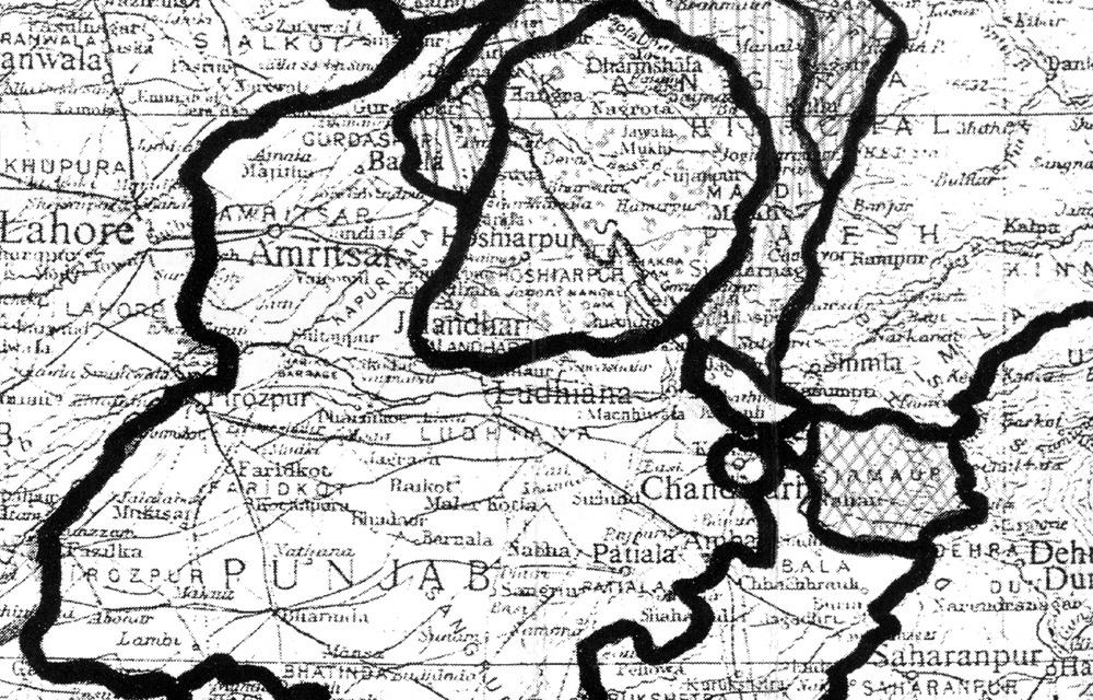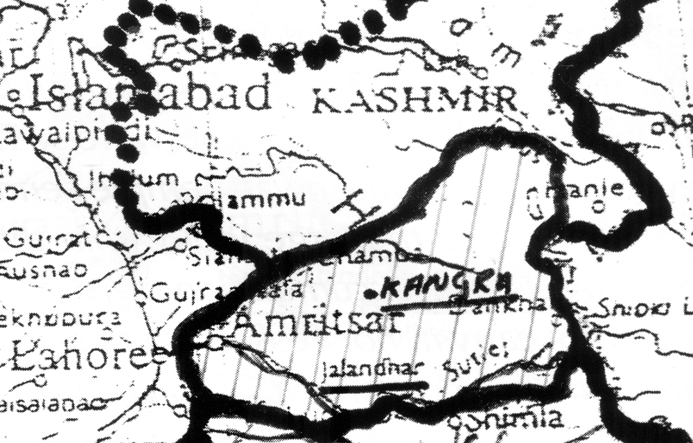 In the second quarter of the 7th century, the Chinese traveler Huien Tsang passed through Jalandhar which he described as 1000 Li (167 miles) long East to West and 800 Li (133 miles) broad North to South. It seems that in this period the Katoch dynasty had lost their empire in Multan and was left with a kingdom of about 25,000 sq. miles. If these measurements are correct, then the present day towns of Chamba, Mandi, Suket (all independent kingdoms during the British Raj) and Satadru (Shimla hill states) must have formed the outer limits of the Kangra States. Huien Tsang on his return from the court of Raja Harshvardhan of Kannauj is said to have revisited the Raja of Jalandhar (A.D. 643) who is identified as Rajanaka Adima Chandra from the Vanshvali.