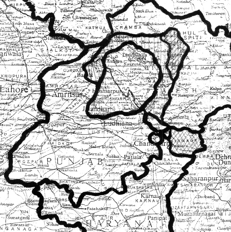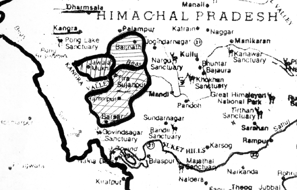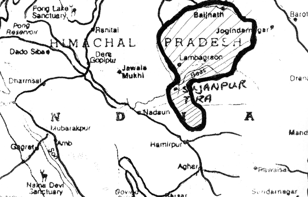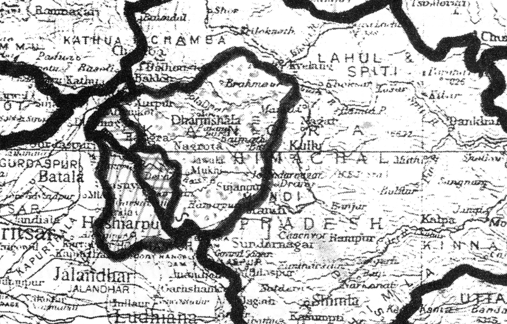 Three independent Katoch states of Maha Moria, Rajgir - Lambagraon, Nadaun - combined area 3000 sq miles larger than Brunie, Sikkim.